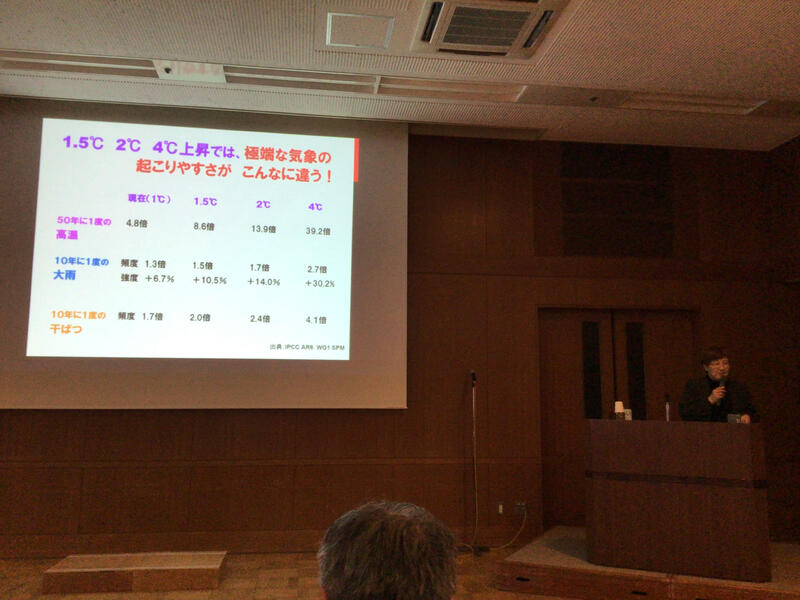 まず、NHKエグゼクティブプロデューサーの堅達京子氏より、気候変動が後戻りできない「ティッピング・ポイント」を迎えている現状や、次世代の行動の重要性について基調講演がありました。続いて地元企業のゼロカーボンへの取り組み報告があり、サプライチェーンにおける環境配慮の実例を学びました。