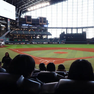 午後はファイターズガールの方がガイドを務め視察見学でした。エスコンの優れている設計やテレビではわからない仕掛けについても教えていただきました。普段足を踏み入れることが難しい、VIPエリアやダッグアウト、プレスルームを訪問しました。エスコンフィールドが優れているのは、野球を知らない人にも楽しめるように作られていること。1人でも家族連れでも友人同士でも、楽しめる要素が詰め込まれていることを実感しました。