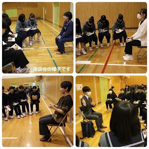 ここ数年で国際流通科を卒業した皆さんが座談会のナビゲーターとして、後輩たちに学生生活や社会人生活について説明をしていただきました。国際流通科のキャリア教育に卒業生が関わっていただくのが、伝統になりつつあります。学業や業務でお忙しい中、貴重なお話をいただきありがとうございました。 このように国際流通科の卒業生(先輩)が在校生に対し、卒業後の世界について率直に語り、教えていくことをこれからも継続していきたいと考えています。先輩方から学ぶ意義は大きいと感じています。 この日に向けて準備にあたっていただき本当にありがとうございました。 この度、ご来校いただいた卒業生の在籍校やお勤め先は下記の通りです。 北海学園大学 北星学園大学 藤女子大学 日本医療大学 釧路公立大学 武蔵女子短期大学 札幌大谷短期大学 北海道情報専門学校 日本航空大学校 北海道職員 千歳市消防 アイリスオーヤマ JALスカイ札幌 ANA新千歳空港 日本デジタル研究