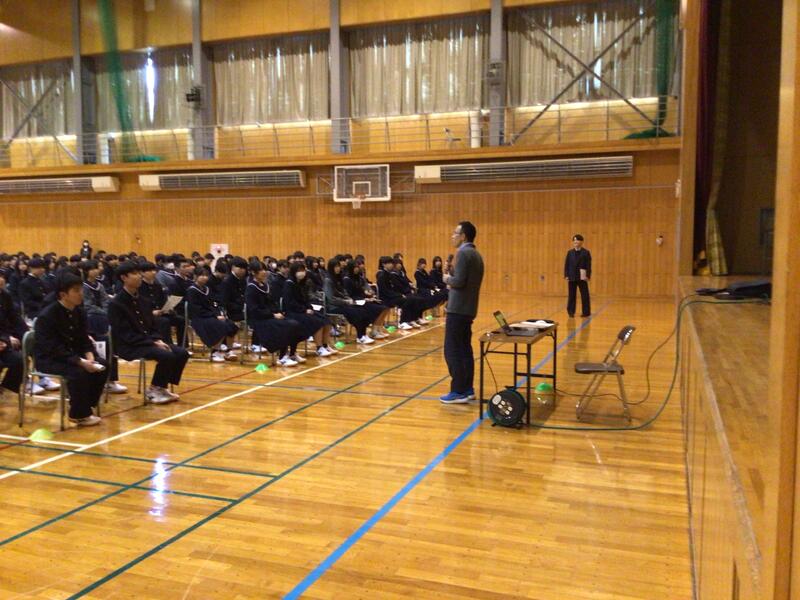 プログラムは、国際交流担当教員による「Hello!」という元気な挨拶からスタート。最初は控えめだった生徒たちも、2度目の呼びかけには力強い「Hello!」で応えてくれ、会場は一気に活気づきました。