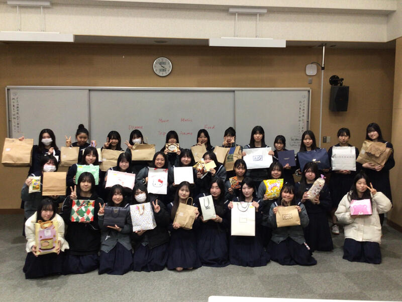 今回はクリスマスが近いこともあり、両校の生徒によるプレゼント交換を行いました。本校からは32名の生徒が参加し、6つのグループに分かれて活動しました。生徒たちは、お互いに贈り合ったプレゼントについて韓国語で説明し合い、感謝の言葉を伝えるなど、和やかな雰囲気の中で交流を深めることができました。