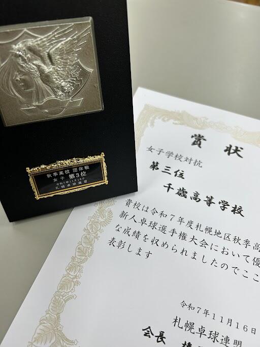 11月15-16にかけて札幌白石区体育館で行われた卓球新人大会で千歳高校は男女共に団体で全道大会進出を決めました。女子はこの大会3年連続の3位となりました。当日会場には保護者の皆様やOB・OG、関係者の皆様が駆けつけてくださいました。たくさんの応援ありがとうございました。