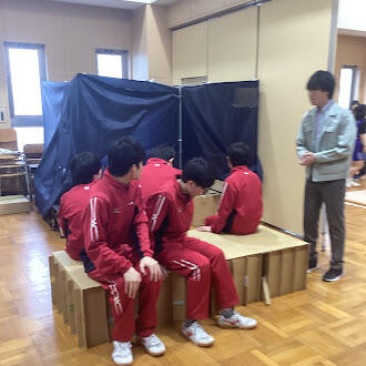 3/19(木)に一日防災教室が開催されました。多目的教室と講義室の2カ所を会場に、ダンボールベット作り、救命講習、応急担架の活用法について学ぶ事ができました。