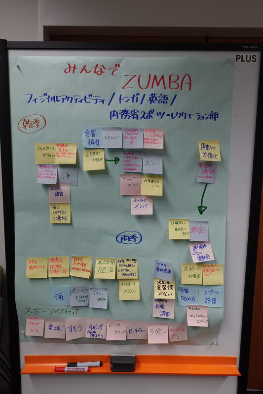 彼は「トンガの肥満問題」をテーマに選び、島国で海が身近であるという特性を活かした「水泳エクササイズ」を提案。最後には、ラテン系ダンスであるズンバを参加者全員で踊り、会場を一体にさせるなど、持ち前の積極性を発揮してくれました。