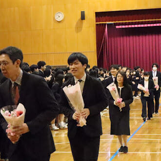 3/24(火)修了式と離任式が行われました。修了式では木幡校長から、先日の報道でもあった「新千歳空港が世界一清潔な空港」と認定されたことから、不断の努力の大切さについて語られました。その後に行われた修了式では退職、転出する11名の職員より、生徒への激励、思い出などそれぞれの思いが語られました。最後に生徒会執行部の生徒より花束が贈られました。11名の皆様の今後のご活躍を期待いたします。