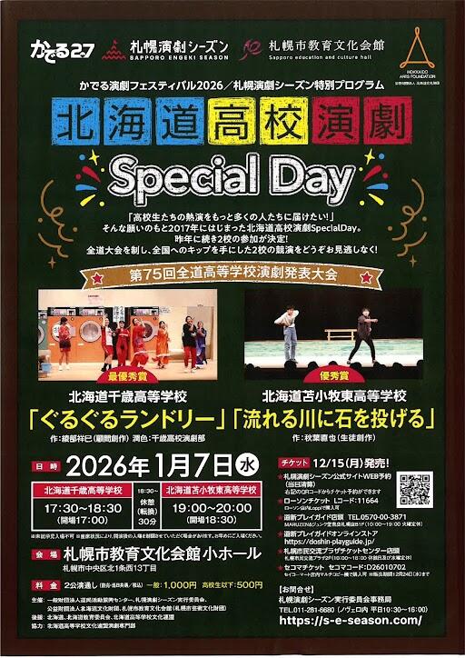 待ちに待っていた情報が届きました!来年1月7日(水)に全道高等学校演劇発表大会で最優秀賞を受賞した千歳高校演劇部作品「ぐるぐるランドリー」が札幌で上演されます。 お時間にある方は是非ご鑑賞ください。当日はともに全国大会に出場する苫小牧東高校演劇部の「流れる川に石を投げる」も上演されます。 とにかく楽しみです!