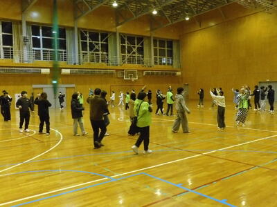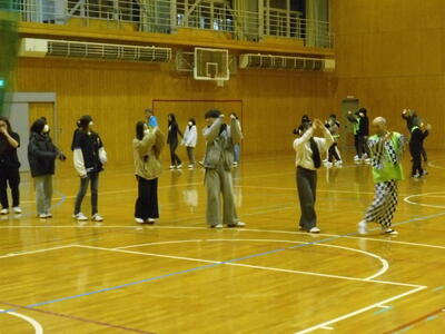 地域住民との交流を深め、千歳市の文化に親しむことを目的に、千歳音頭保存会(銀の翼)のご協力をいただき、11月21日(金)に総合的な探求の時間の取組として「千歳音頭」を全校生徒で踊りました。振り付けの動きの意味や細かな動作の修得など、保存会の皆さんも深く感心するほど前向きに楽しく文化に触れている姿は、とても素晴らしかったです。